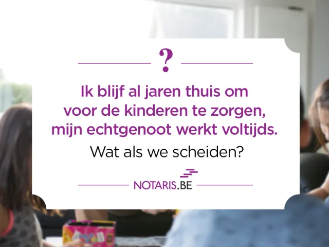 Mensen kunnen om tal van uitéénlopende redenen niet beroepsactief te zijn: de zorg voor kinderen thuis, een langdurige ziekte, verlies van werk… Het gebeurt wel vaker dat één van de partners thuis blijft, terwijl de andere partner voltijds werkt. Heeft dat een impact wanneer de huwelijkspartners beslissen om te scheiden?