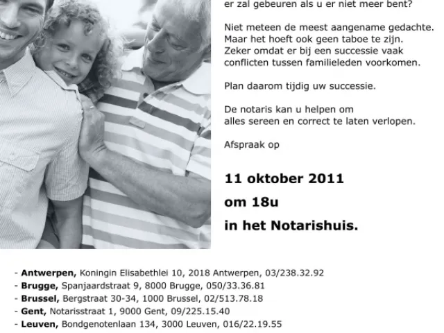 Afspraak op 11 oktober 2011 om 18u in het Notarishuis: