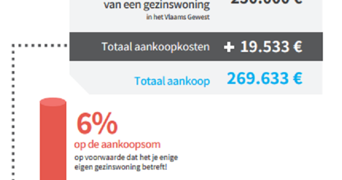 Naast de prijs, vormen de belastingen het grootste deel van de aankoopkosten. In Vlaanderen tel je in de meeste gevallen 10% (standaardtarief) of 6% (verlaagd tarief voor de aankoop van een gezinswoning ) neer voor de registratiebelasting . Koop je een nieuwbouw ? Dan betaal je 21% btw .
