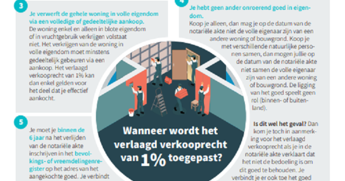 Wil je weten wat de voorwaarden zijn om te genieten van het tarief van 1%? Bekijk onze handige infofiche!