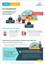 Het keuzebeding In principe zal de langstlevende slechts de helft van de nalatenschap, waaronder ook een deel van het gemeenschappelijk vermogen, in vruchtgebruik erven. De blote eigendom gaat naar de kinderen. Men kan in een huwelijkscontract echter geldig bedingen dat het gemeenschappelijk vermogen bij ontbinding door overlijden zal toebehoren aan de langstlevende, naar keuze van deze laatste. De langstlevende kan dan zelf kiezen wat hij met dit gemeenschappelijk vermogen wenst te doen, en welke elementen hij daaruit eventueel volledig voor zich wil houden. Op die manier moet er geen keuze gemaakt worden jaren vóór het overlijden. De langstlevende kan een keuze maken op het moment van de verdeling, wanneer hij of zij beter zijn financiële noden kan inschatten. biedt de langstlevende partner meer vrijheid bij het verdelen van het gemeenschappelijk vermogen.